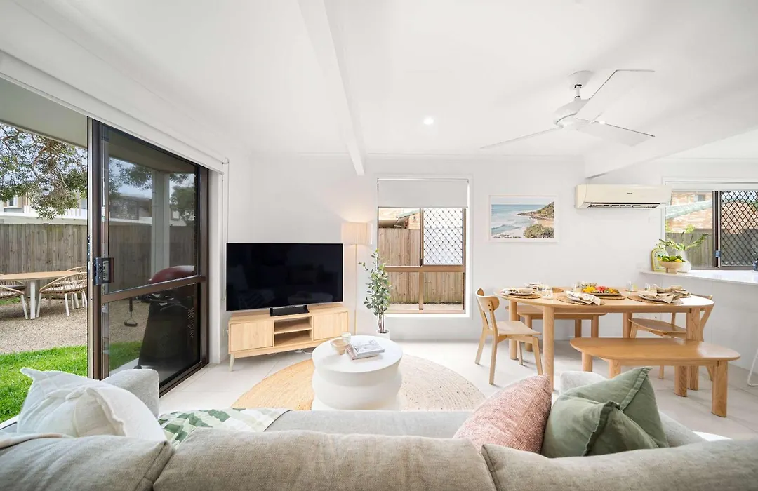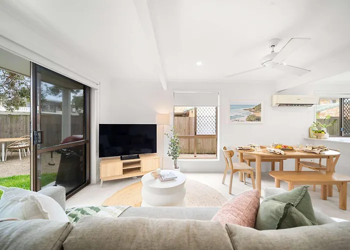 Coolum Coastal Abode - Pet-Friendly Walk To Beach Coolum Beach villa ligt in de buurt van bezienswaardigheden zoals Coolum Boardroom, binnen een straal van 450 meter. Het vakantiehuis heeft parkeerplaatsen en een patio met uitzicht op de tuin.